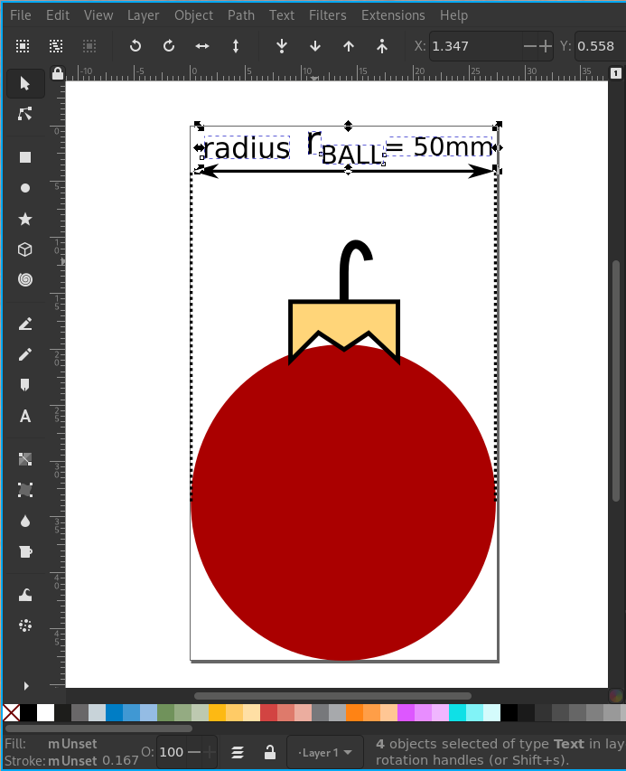 The part where we do repeat ourselves, is in the symbol of the Christmas ball's radius that we set