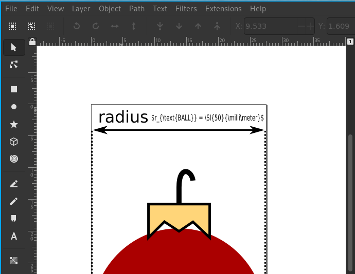 Let's start with a simple example by using some anti-patterns. Assume, you already design your figure using inkscape, but for now you follow the principle of WYSIWYG - What you see is what you get. Thus, you change the position and size of the object and text until it looks good in inkscape and you are satisfied.
