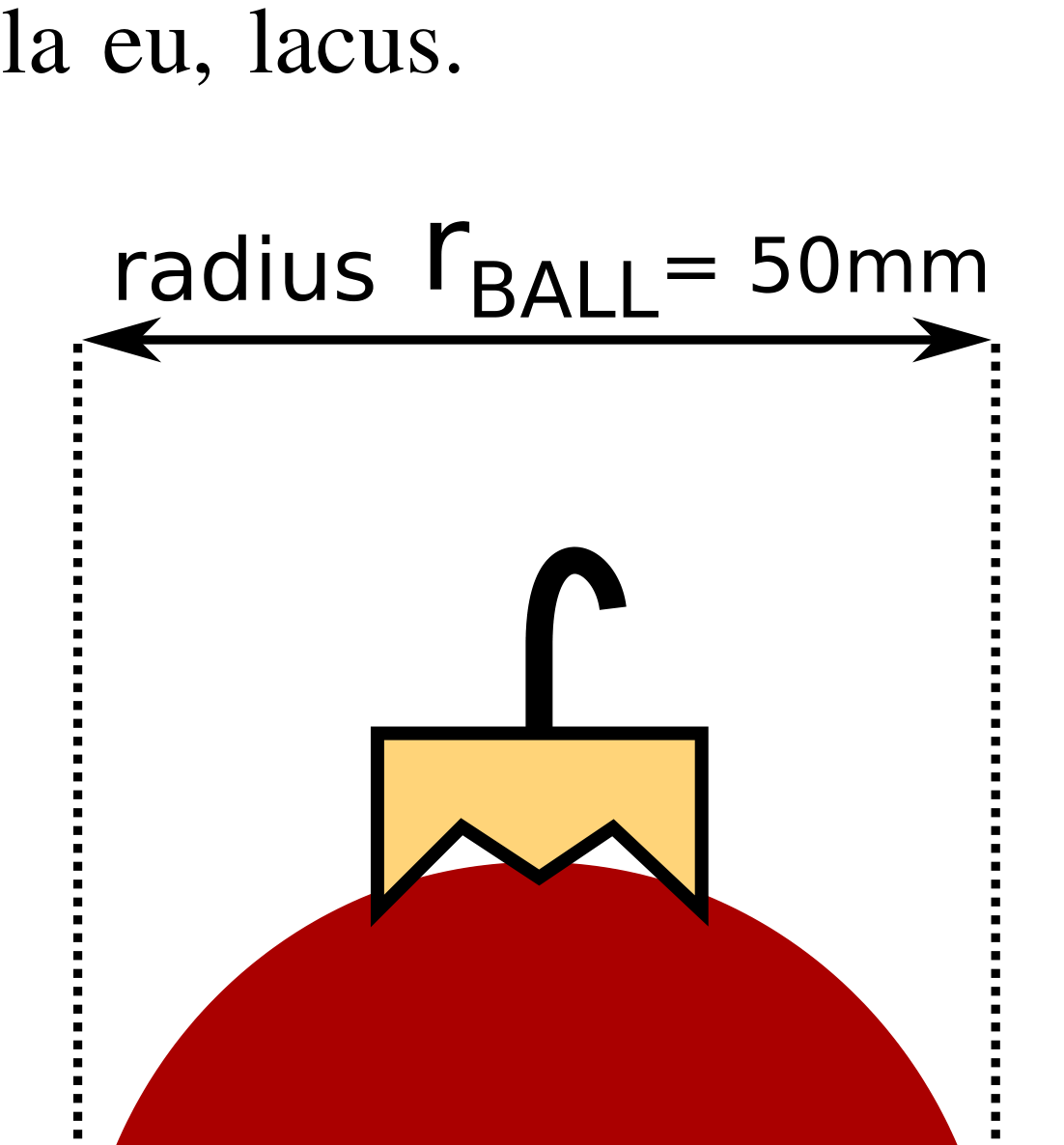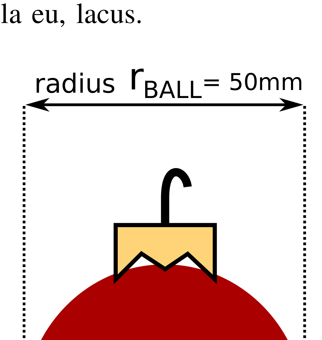 \caption{A red Christmas ball with a radius of $r_{\text{BALL}} = \SI{50}{\milli\meter}$.}%